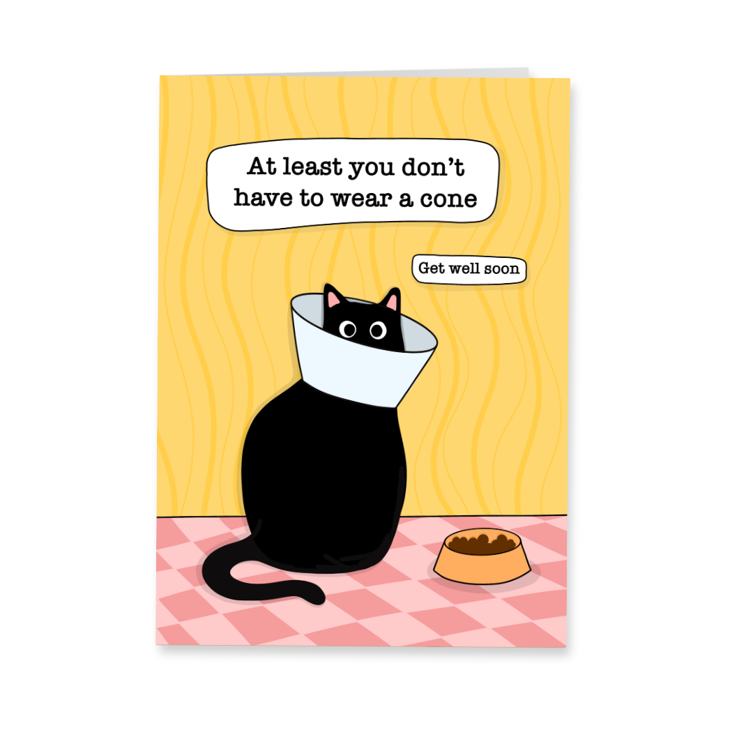 Deze grappige beterschapskaart met kat is perfect voor iedereen die wel wat humor kan gebruiken tijdens het herstel.