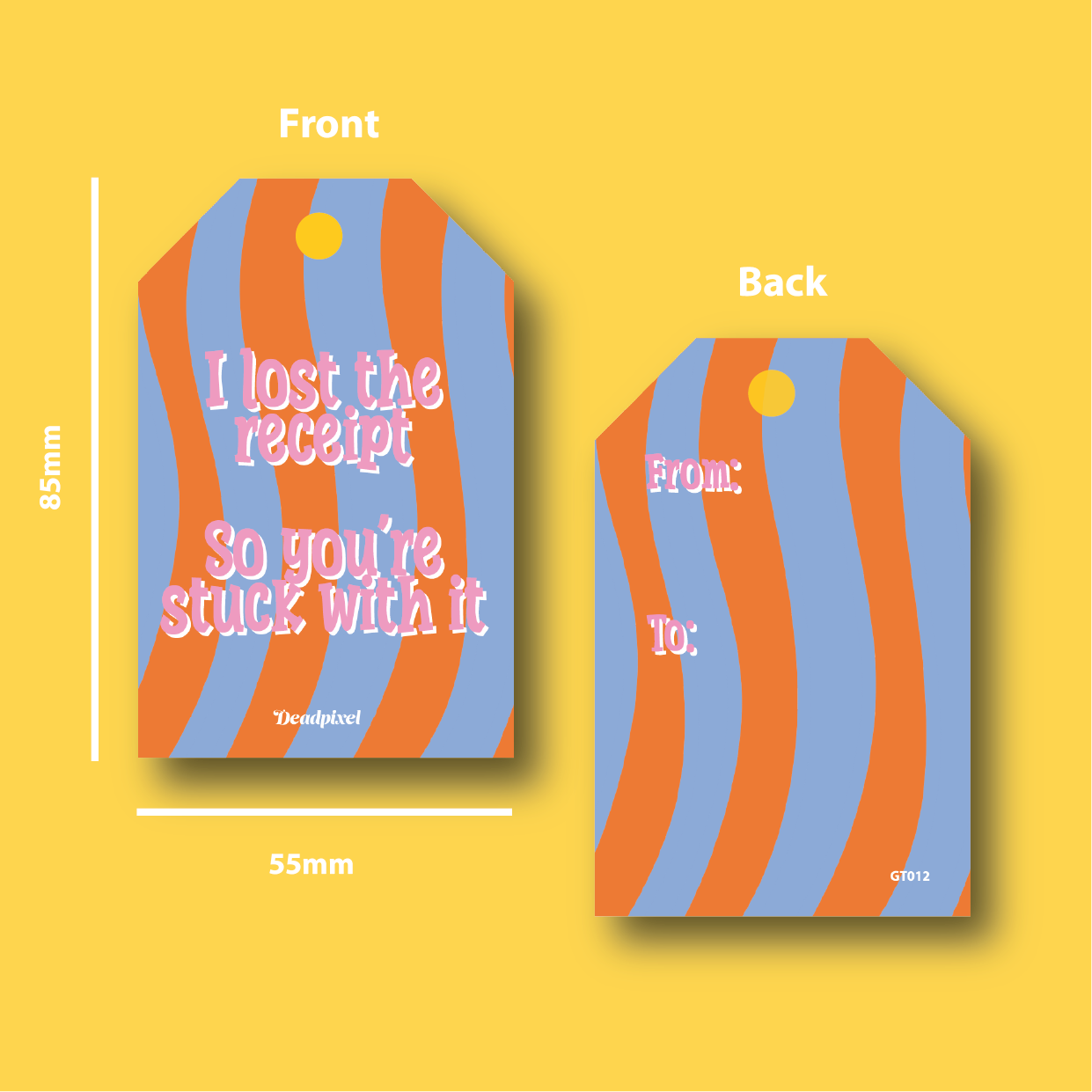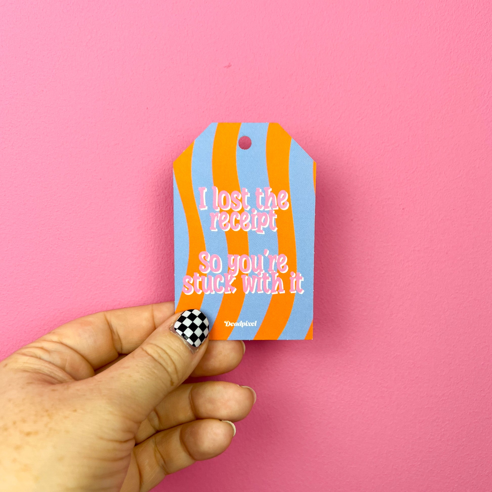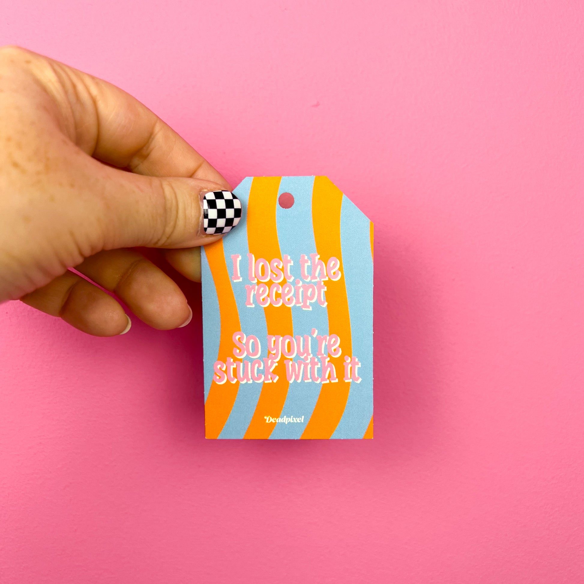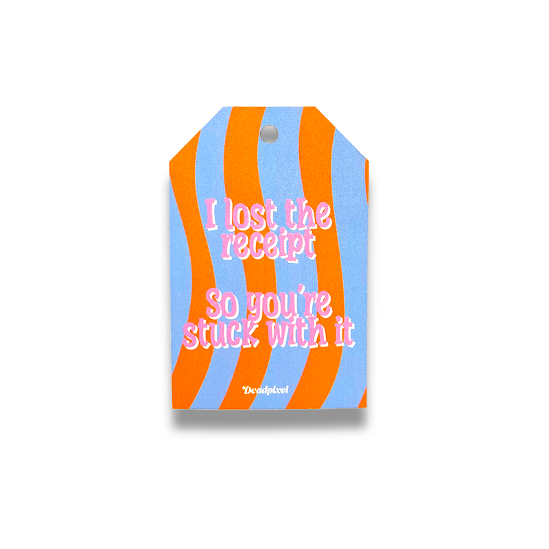 Cadeaulabel “I lost the receipt. So you're stuck with it” – ideaal voor cadeaus die definitief een nieuwe eigenaar hebben. Perfect voor vrienden, familie of collega’s met gevoel voor droge humor. Subtiel-komisch en speels.