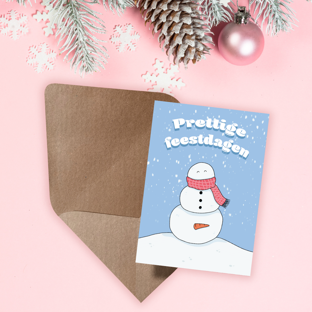 Wenskaart kerst - Sneeuwman