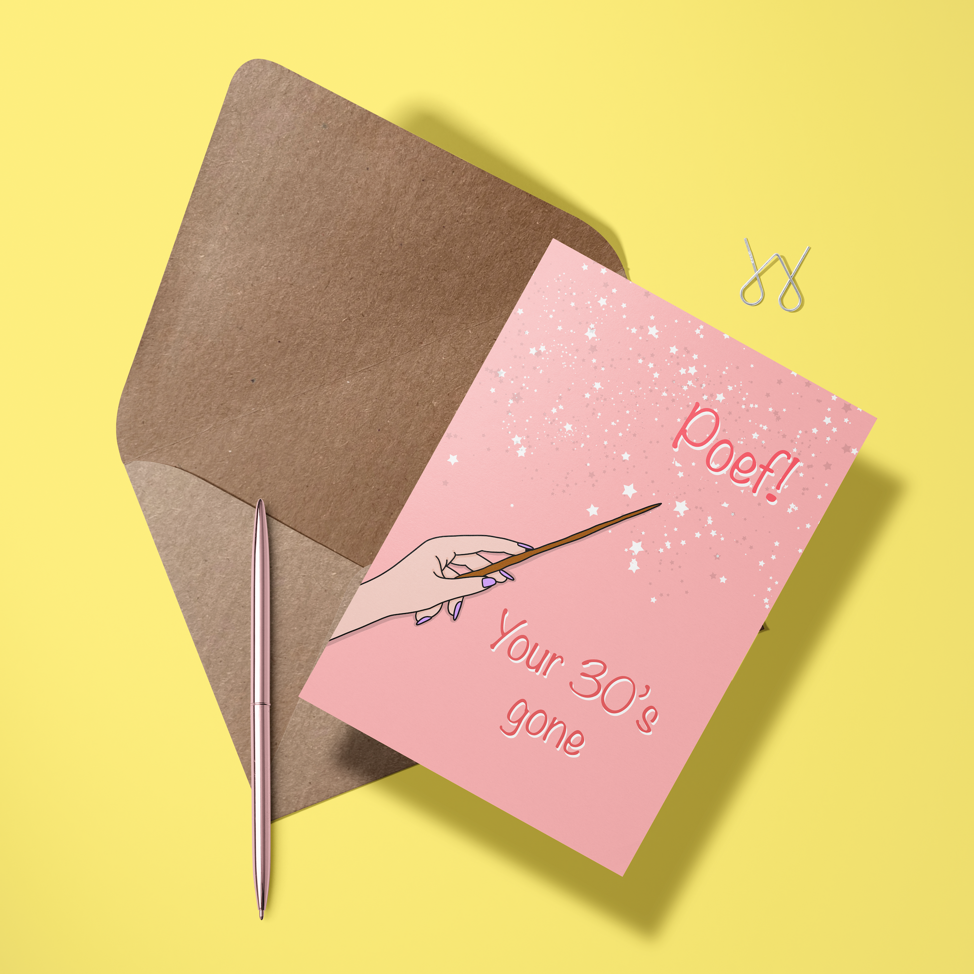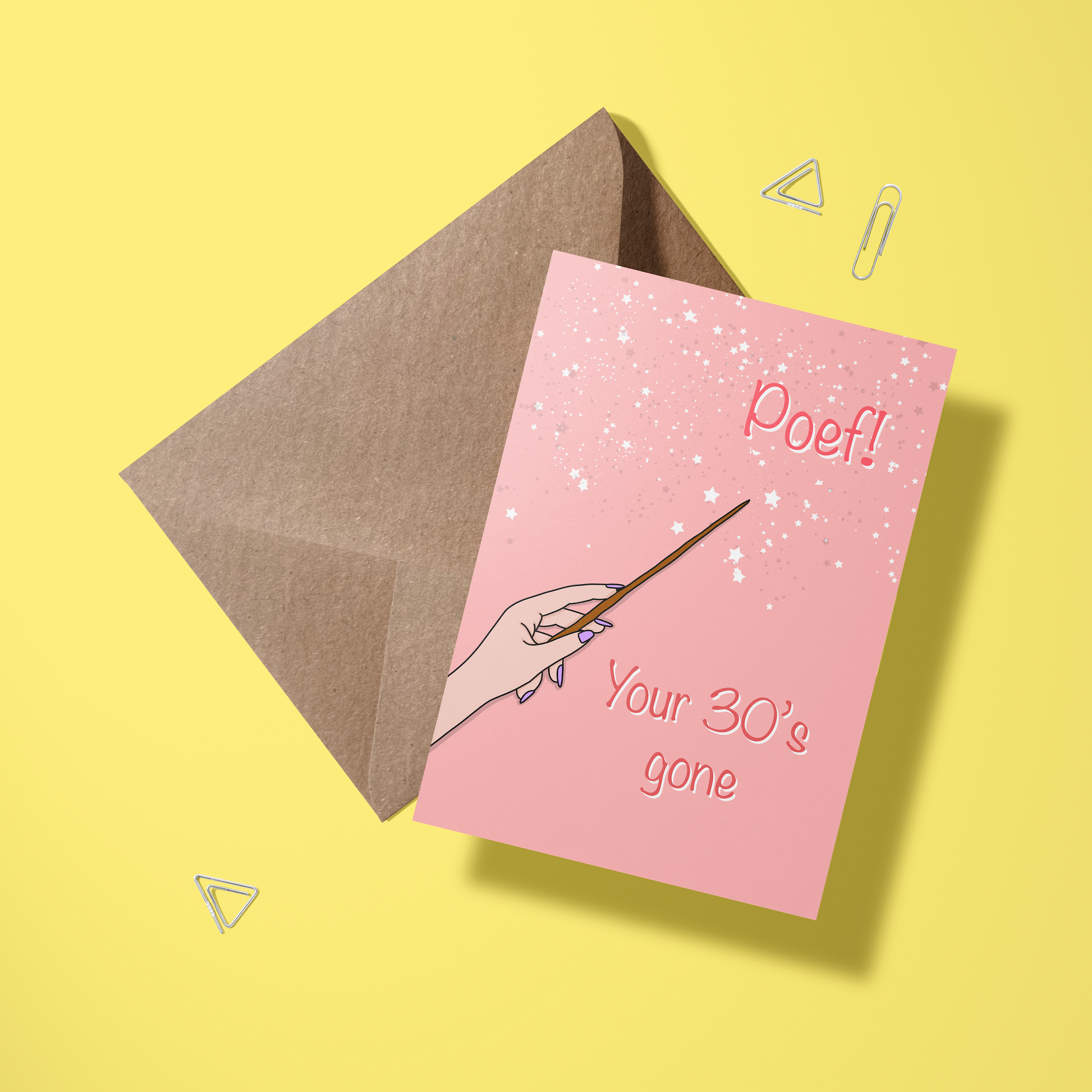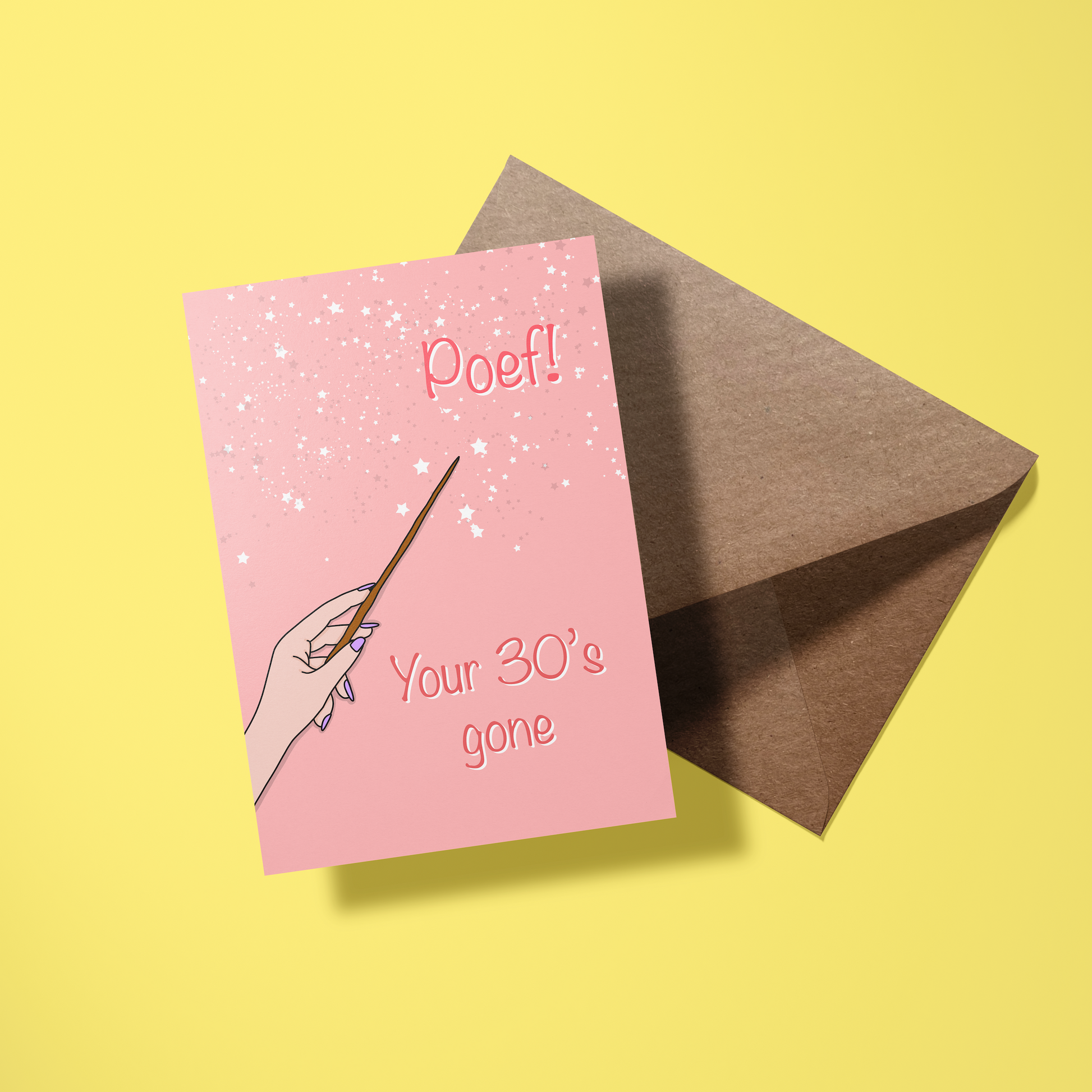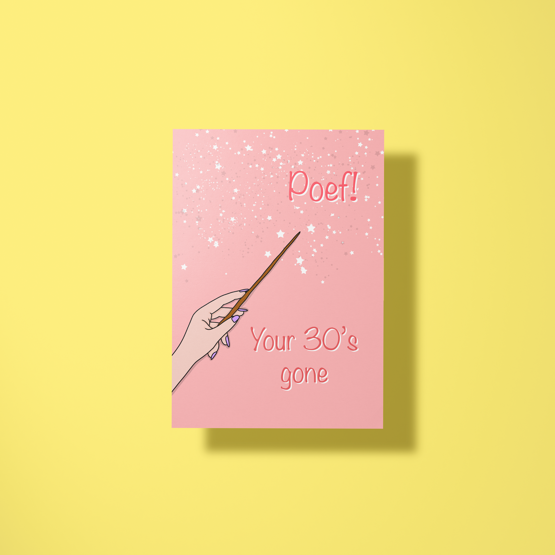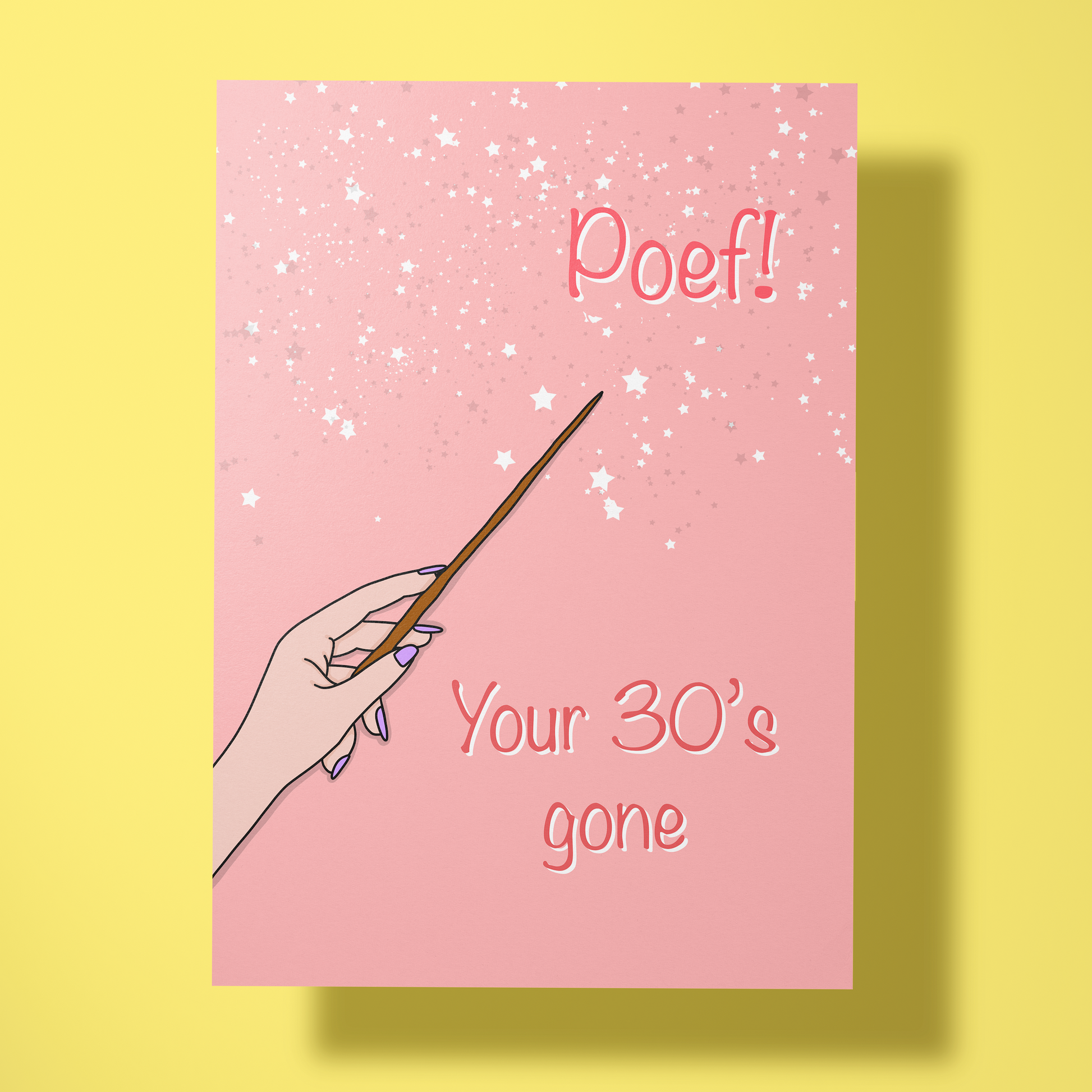 Tadaaa, en weg zijn je 30’s! Deze magische kaart is perfect voor iedereen die de grote 4-0 bereikt met een knipoog en een lach.
