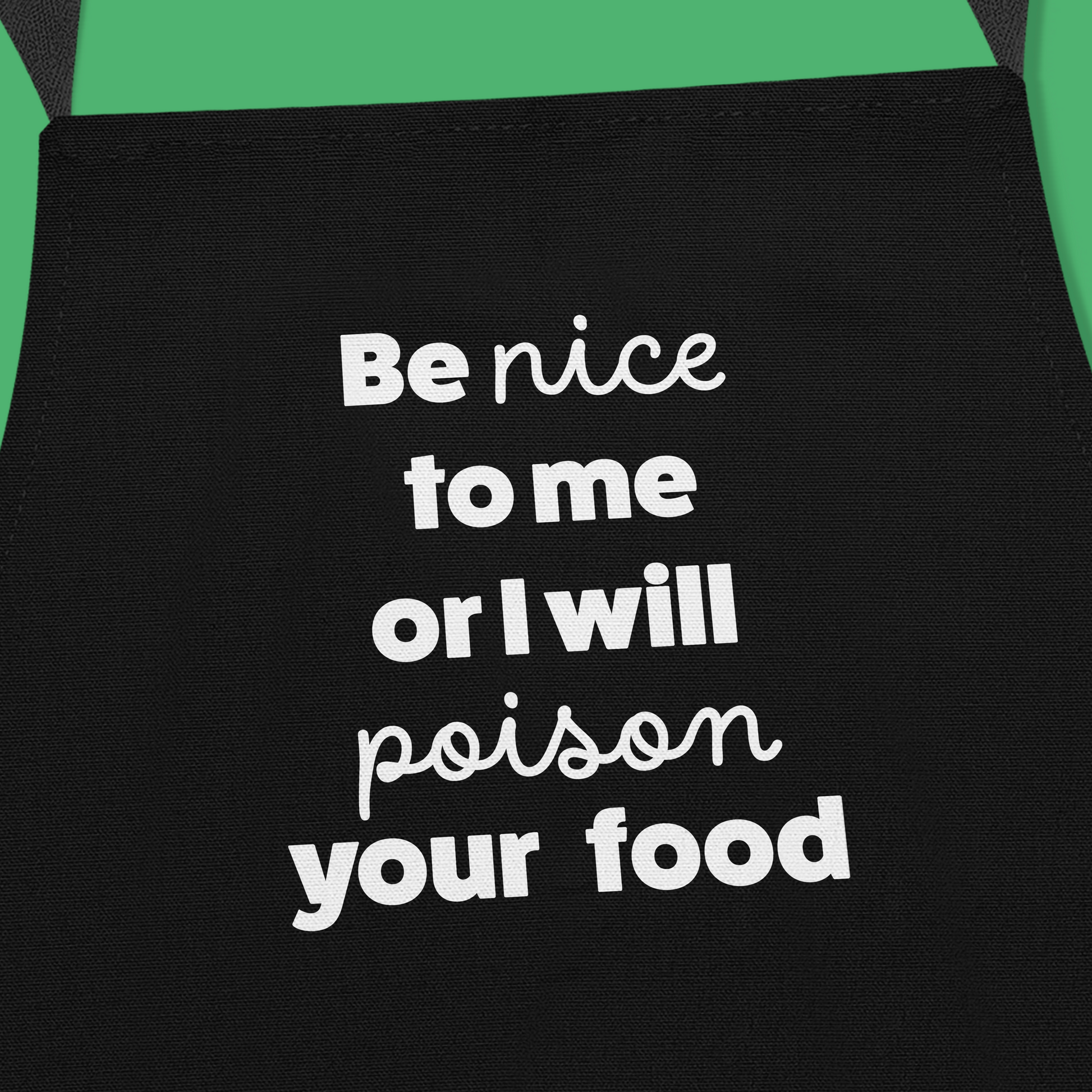 Keukenschort zwart met grappige tekst - Be nice or I will poison your food