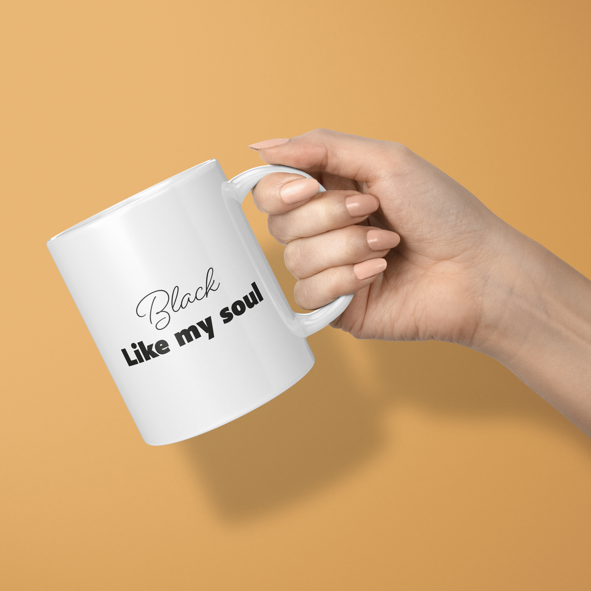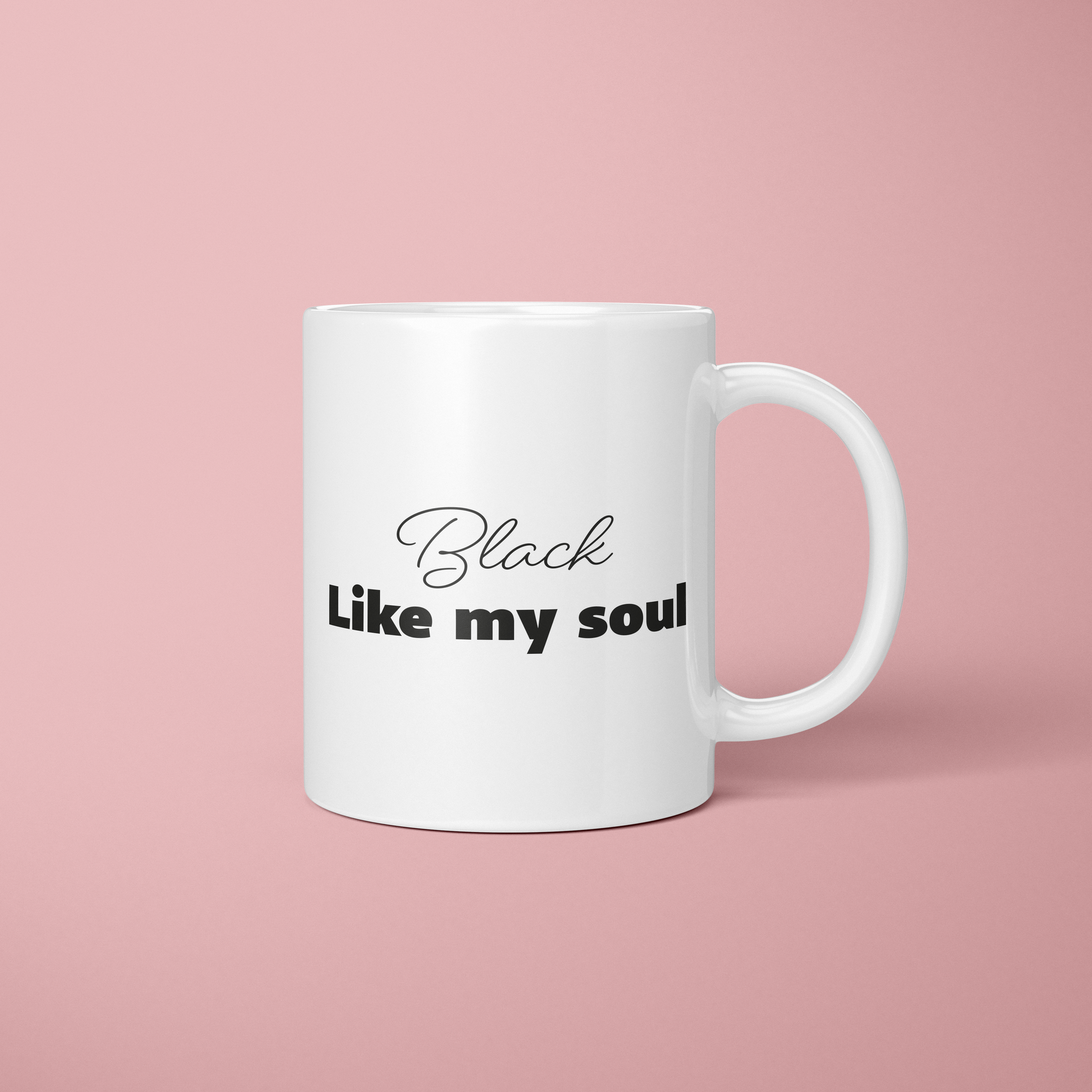 Laat je mok de toon zetten voor de dag met de humoristische zin "Mok Black like my soul". Het is de perfecte manier om je ochtend te beginnen met een luchtig moment en een glimlach.