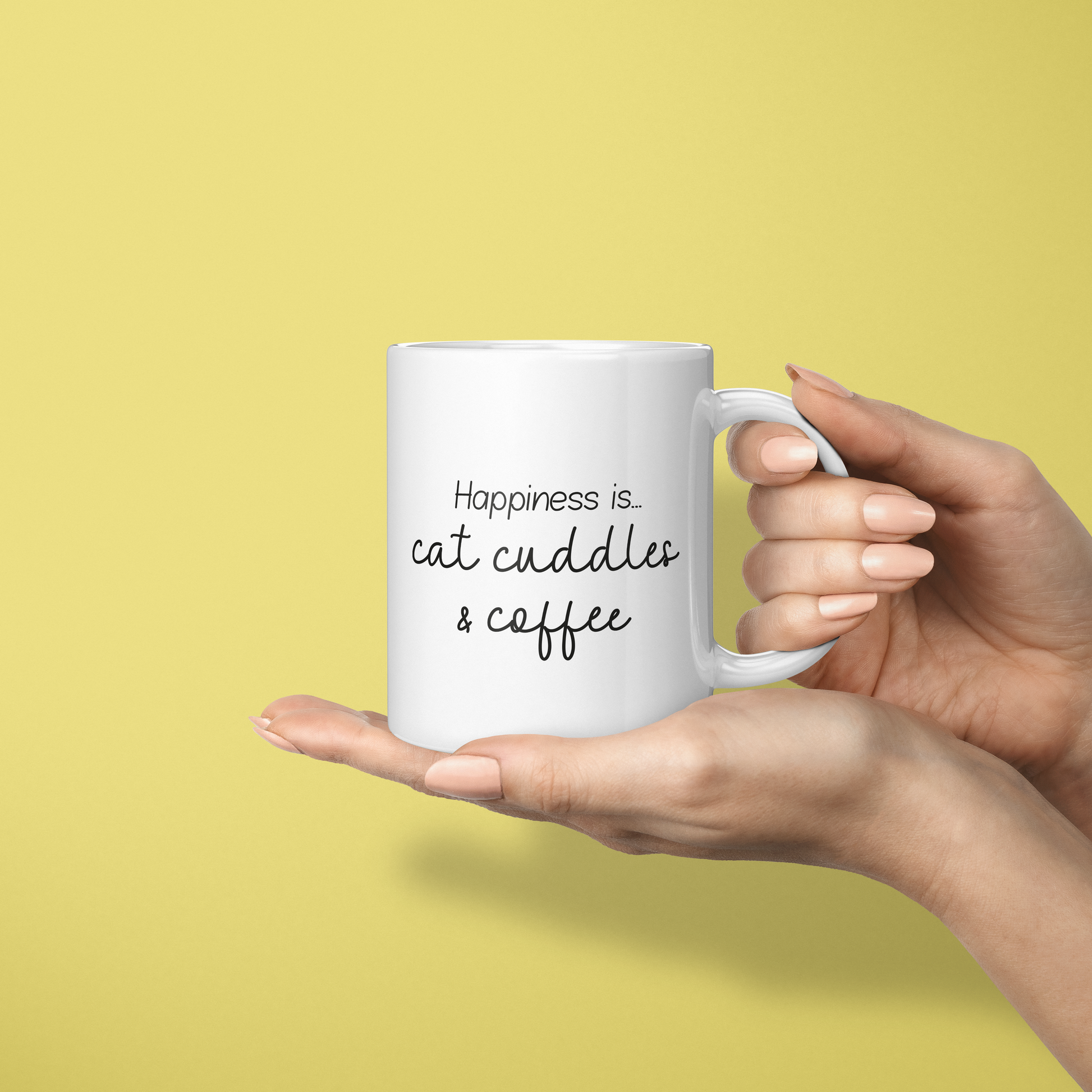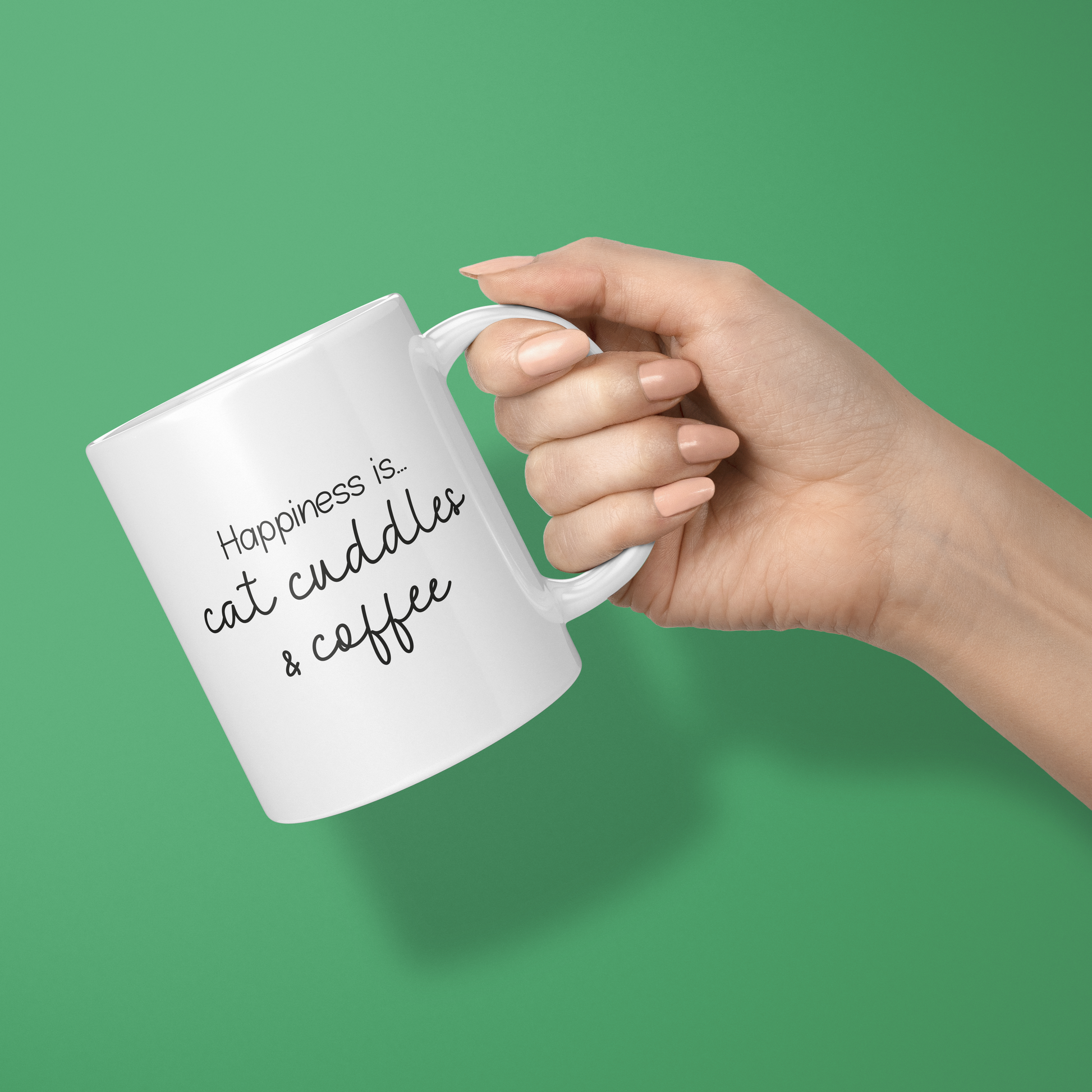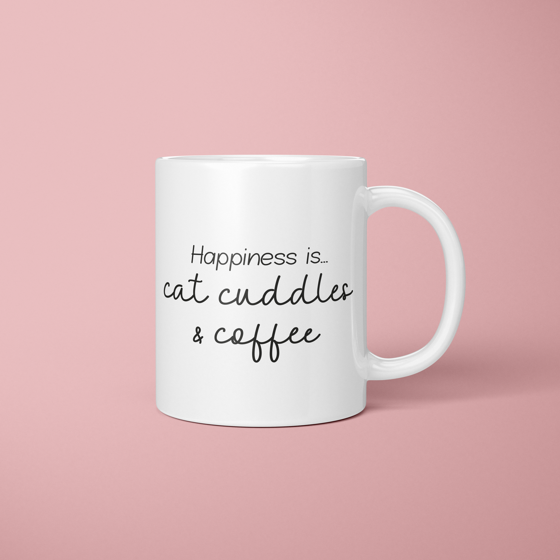 Begin je dag met een glimlach - "Happiness is.... cat cuddles & coffeel" mok!