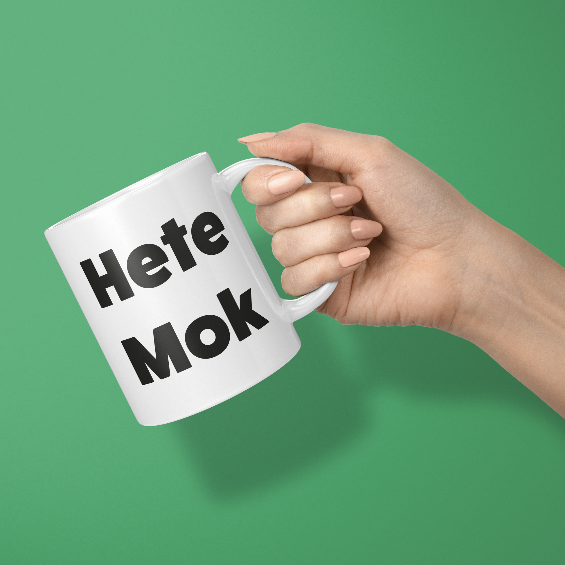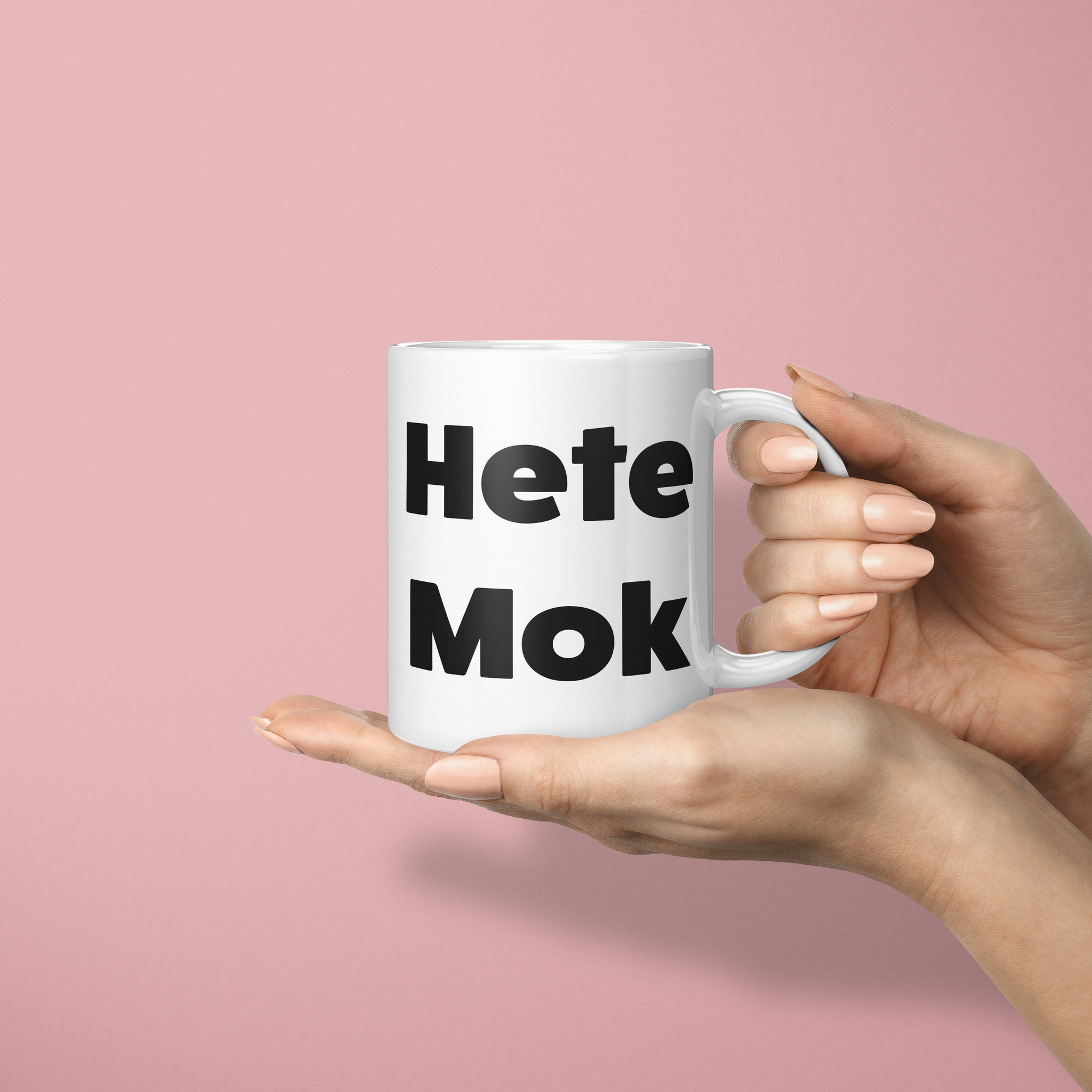 Laat je mok de toon zetten voor de dag met de humoristische zin "Hete mok". Het is de perfecte manier om je ochtend te beginnen met een luchtig moment en een glimlach.