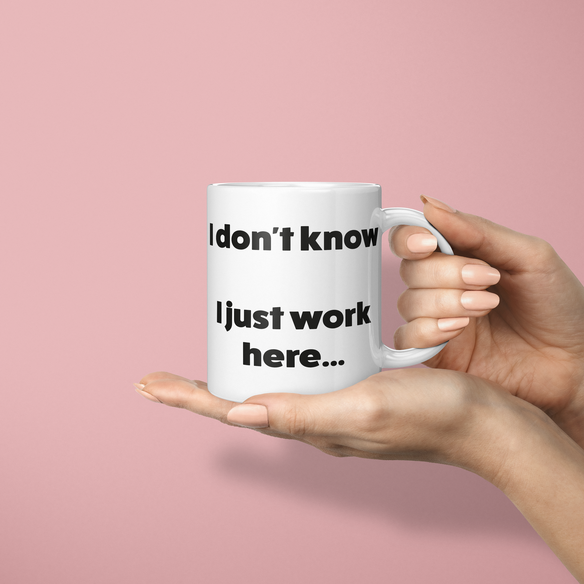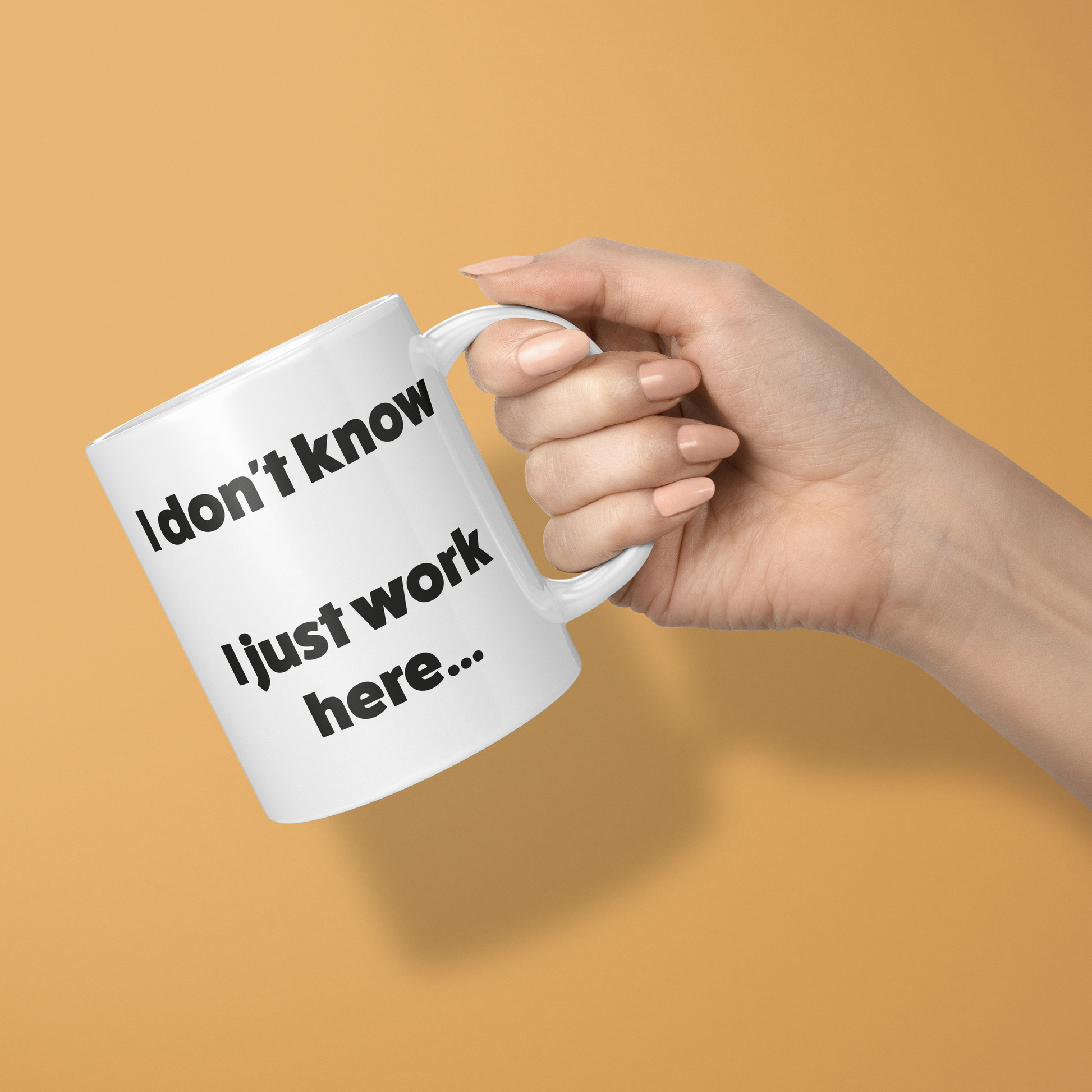 Verspreid de vreugde op de werkplek! Onze "I don't know I just work here..." mok is een luchtig en attent cadeau voor collega's, managers of iemand in je professionele kring die wel een lach kan gebruiken.