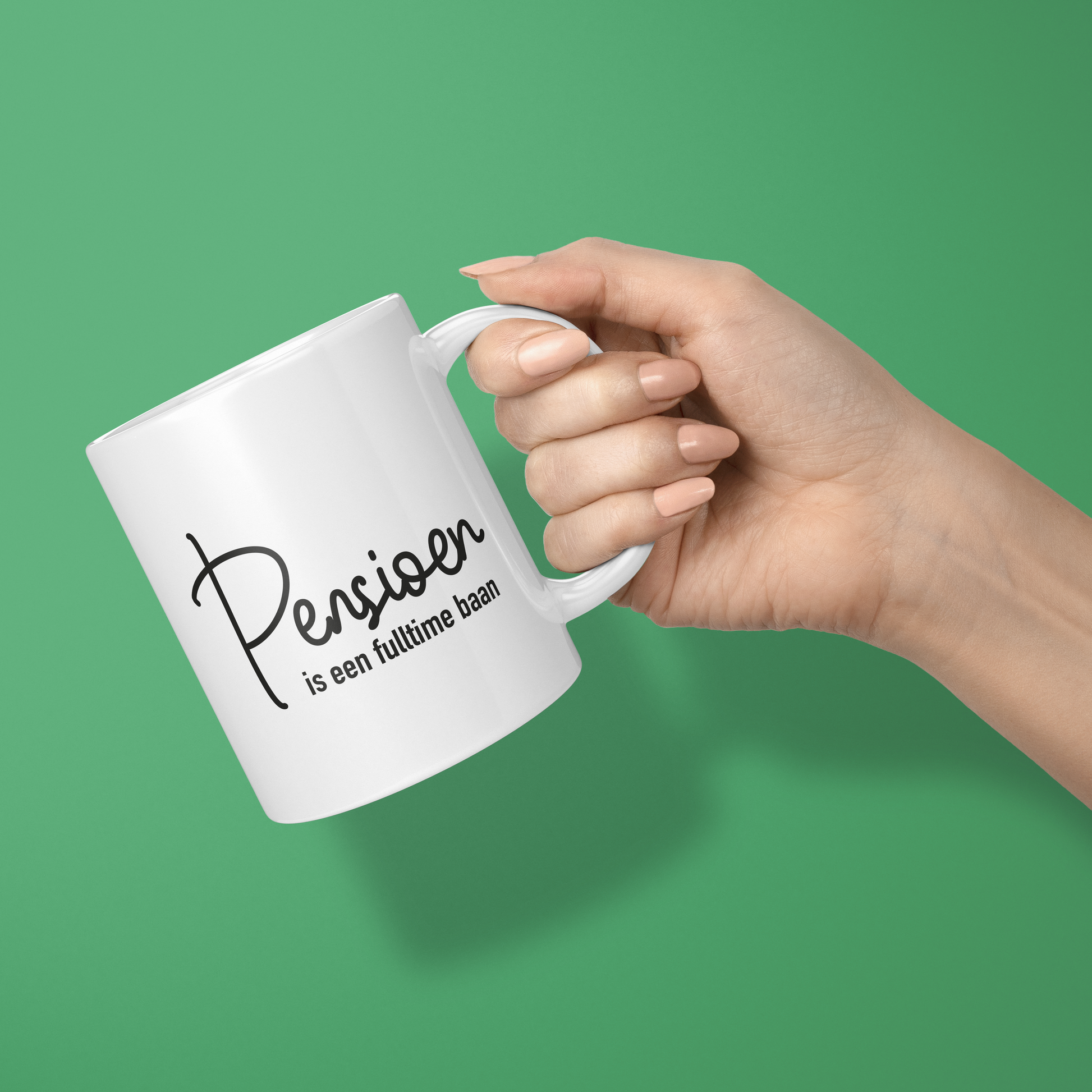 Vier de speciale mijlpaal van pensionering met een cadeau dat zowel praktisch als hartverwarmend is. Met de quote "Pensioen is een fulltime baan" Deze mok is een perfecte manier om iemand te feliciteren met hun pensioen en hen te laten weten hoeveel ze gewaardeerd worden.