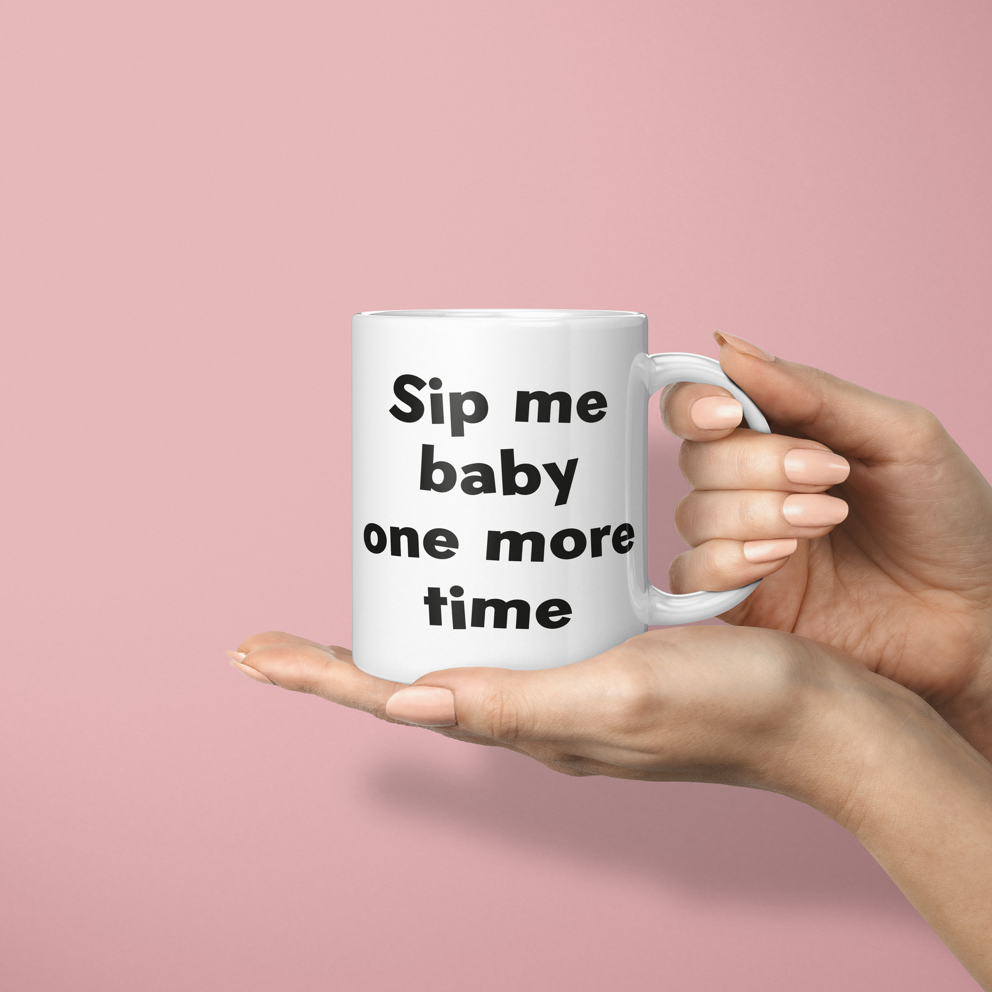 De mok voor al wie opgegroeid is in de 90's. Laat je mok de toon zetten voor de dag met de humoristische zin "Sip me baby one more time". Het is de perfecte manier om je ochtend te beginnen met een luchtig moment en een glimlach.