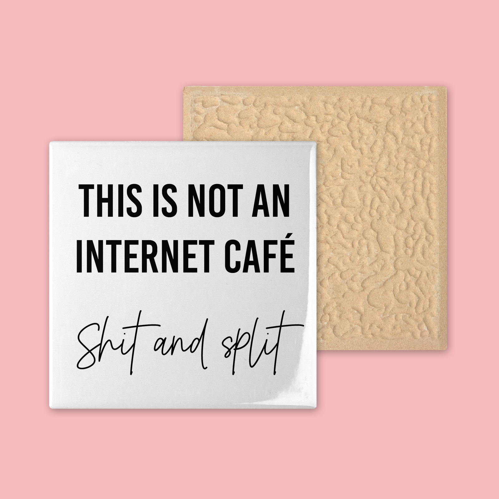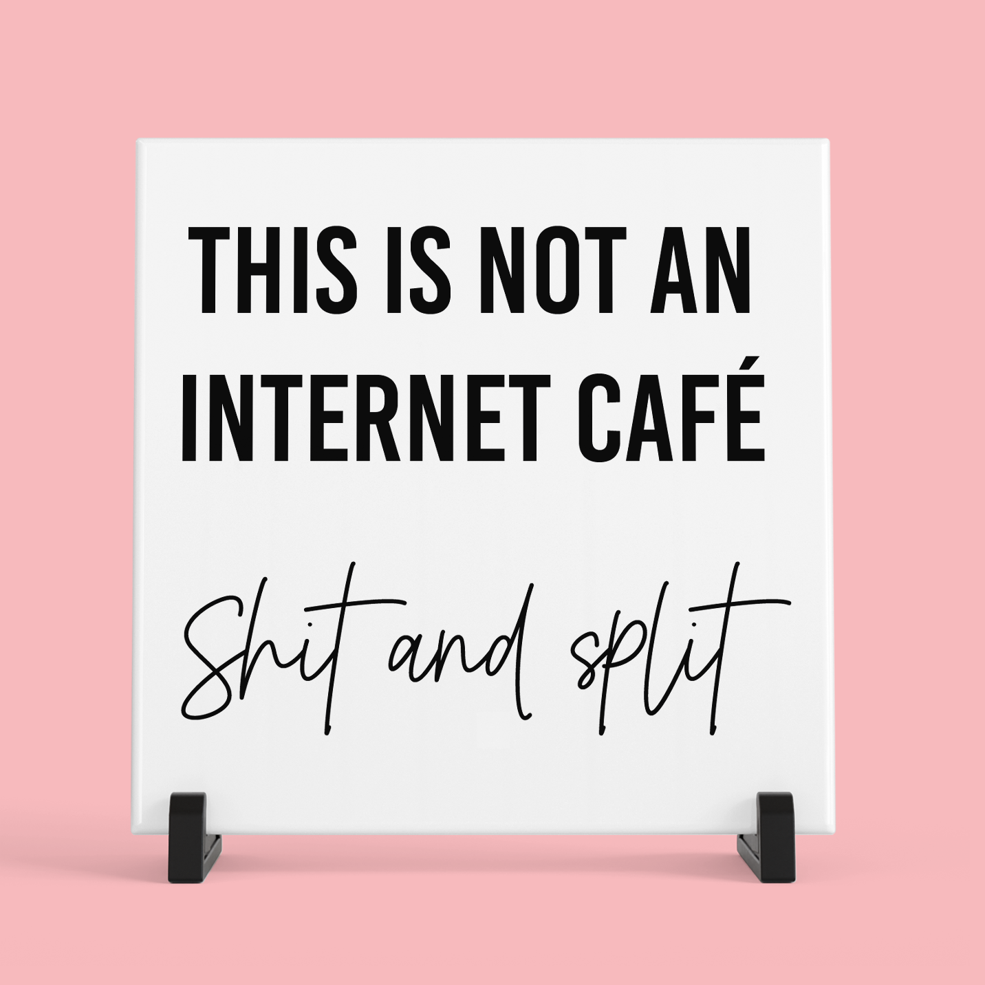Voor een beetje humor in je badkamer of toilet is deze tegel ideaal! "This is not an Internet cafe, shit & split" is een speelse waarschuwing voor je gasten.
