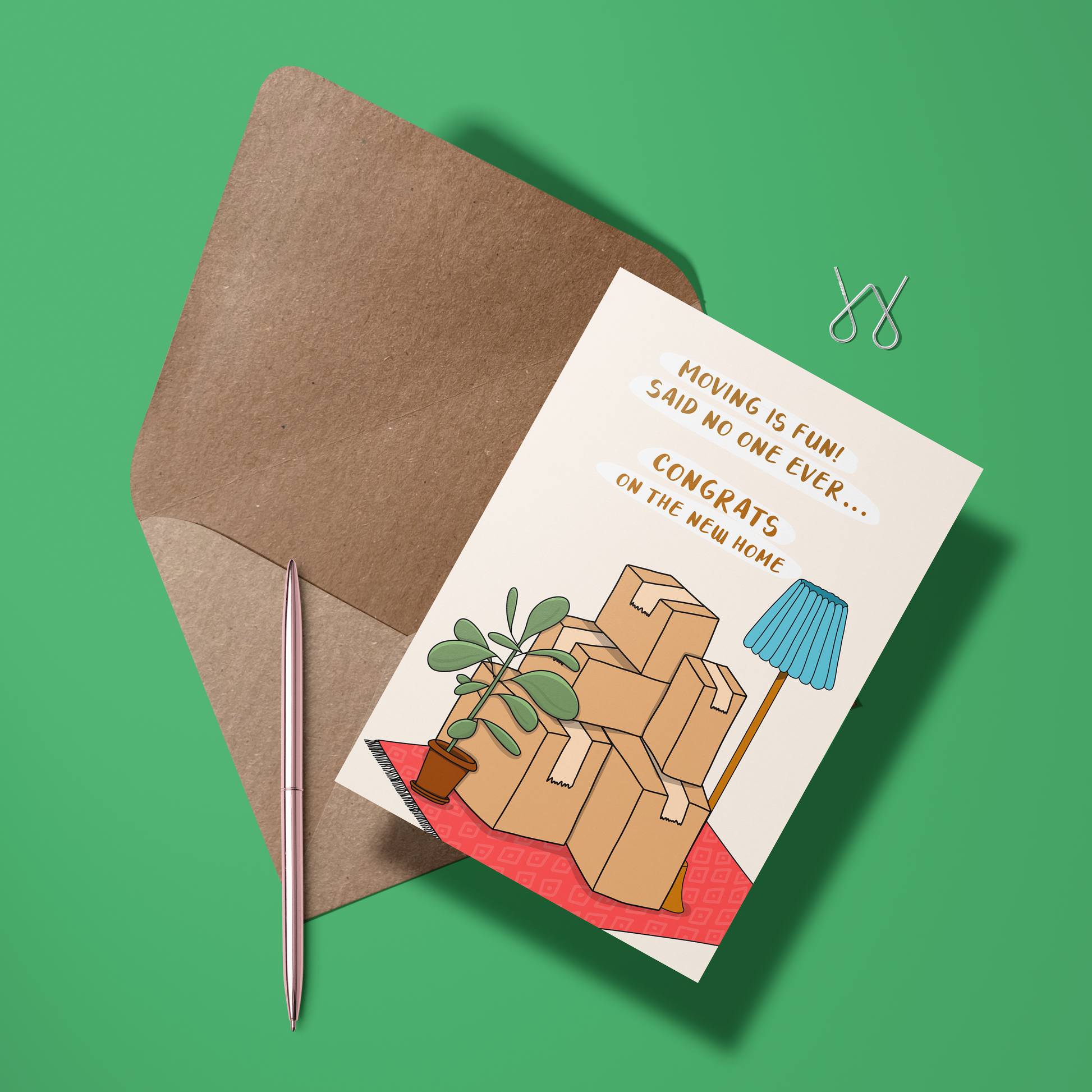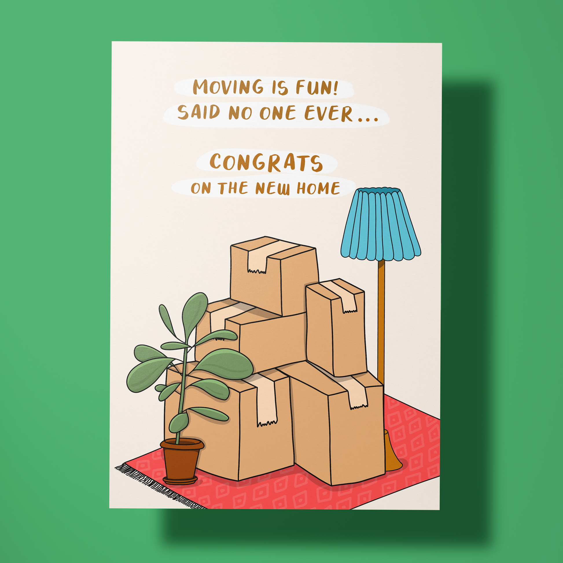 Maak de verhuizing van je vrienden, familie of collega’s een beetje luchtiger en leuker met onze wenskaart: "Moving is Fun Said No One Ever... Congrats on the New Home"! Deze kaart biedt een flinke dosis humor voor het avontuur dat verhuizen met zich meebrengt, en feliciteert tegelijkertijd met hun nieuwe woning.